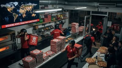 પેન્ટાગોન નજીકના પિઝા આઉટલેટ્સમાં મોડી રાતના ઓર્ડરમાં અસામાન્ય રીતે મોટો ઉછાળો જોવા મળ્યો છે, કારણ કે આવી પ્રવૃત્તિ ઘણીવાર મુખ્ય યુ.એસ. સુરક્ષા ઘટનાઓ સાથે સંકળાયેલી હોય છે. બિનસત્તાવાર હોવા છતાં, વૈશ્વિક કટોકટી પ્રગટ થાય ત્યારે આ પેટર્ન લોકોનું ધ્યાન આકર્ષિત કરવાનું ચાલુ રાખે છે.