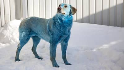 તમે ક્યારેય રંગીન શ્વાન જોયા છે ? તમે કહેશો હાં ભારતમાં હોળી ધૂટેળી બાદ અમે ઘણા શ્વાનને રંગમાં રંગાયેલા જોયા છે. પરંતુ એક જગ્યા એવી છે જ્યાં હોળી નથી રમાતી તેમ છતા ત્યાંના ડોગ્સનો કલર બદલાઇ ગયો છે. આ શ્વાન અચાનક જ ભૂરા રંગમાં ફેરવાઇ ગયા છે. ખરેખર ઘટના કઇંક આમ છે કે રશિયા ઝેકઝિંક્સ નામના શહેરમાં શ્વાનના રંગ અચાનક જ ભૂરા થઇ ગયા છે. તમને જણાવી દઇએ કે કેટલાક વર્ષો પહેલા ભારતમાં પણ આ પ્રકારની એક ઘટના જોવા મળી હતી.