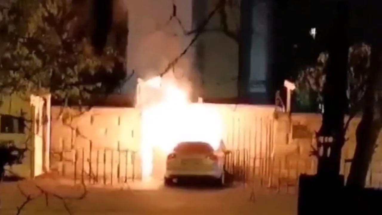 રોમાનિયામાં રશિયન એમ્બેસીના ગેટ સાથે કાર અથડાઈ, ભીષણ આગમાં ડ્રાઈવરનું મોત, જુઓ વીડિયો