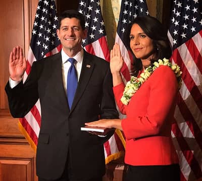 અમેરિકામાં હવાઈથી સીનેટર પદ પર કાબિજ થયા બાદ ભગવદ્ ગીતા પર હાથ રાખીને સોગંદ લઈને ઇતિહાસ રચી દેનાર આ તુલસી એટલે તુલસી ગૅબાર્ડ. તેઓ પહેલી વાર 2011માં પ્રતિનિધિ સભામાં ચૂંટાયા હતાં.