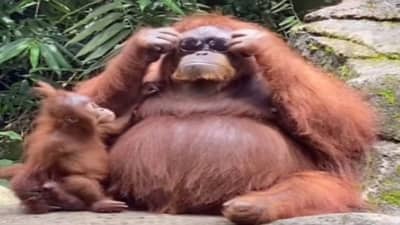 હકીકતમાં, મુલાકાતીના ચશ્મા અચાનક ઉરાંગઉટાગના ઘેરામાં પડી જાય છે. પરંતુ આ પછીનું દૃશ્ય જોઈને દરેક ખુશ થઈ ઉઠે છે.. લોલિતા ટેસ્ટુ નામની વ્યક્તિએ ઇન્સ્ટાગ્રામ (Instagram) અને ટિકટોક પર એક વીડિયો શેર કર્યો છે. લોલિતાએ જણાવ્યું કે ઇન્ડોનેશિયાના બોગોરમાં તમન સફારી દરમિયાન આકસ્મિક રીતે બે ગોગલ્સ નારંગીનાં વાડામાં પડી ગયા. ચશ્મા જોઈને ત્યાં હાજર ઓરંગુટન તેના બાળક સાથે આવ્યો અને તેને ઉપાડીને ઉંધા ચશ્મા લગાડી દીધા. આ વીડિયો સોશિયલ મીડિયા (Social Media) પર એટલો વાયરલ થયો કે એક દિવસમાં તેને 30 કરોડથી વધુ વખત જોવામાં આવ્યો છે.