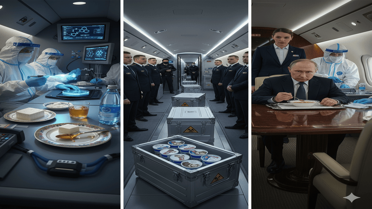 રશિયન રાષ્ટ્રપતિ વ્લાદિમીર પુતિનના સુરક્ષા પ્રોટોકોલ વિશ્વના સૌથી કડક પ્રોટોકોલમાંના એક છે, પરંતુ તેમની ખાદ્ય સુરક્ષા વ્યવસ્થા હોલીવુડની જાસૂસી ફિલ્મના દ્રશ્યથી ઓછી નથી. જ્યારે પુતિન વિદેશ પ્રવાસ કરે છે, ત્યારે તેમની સુરક્ષા એજન્સીઓ, ખાસ કરીને રશિયન ફેડરલ સુરક્ષા સેવા (FSO), શૂન્ય-જોખમ નીતિ અપનાવે છે અને સંપૂર્ણપણે યજમાન દેશના ખોરાક પર આધાર રાખતી નથી.