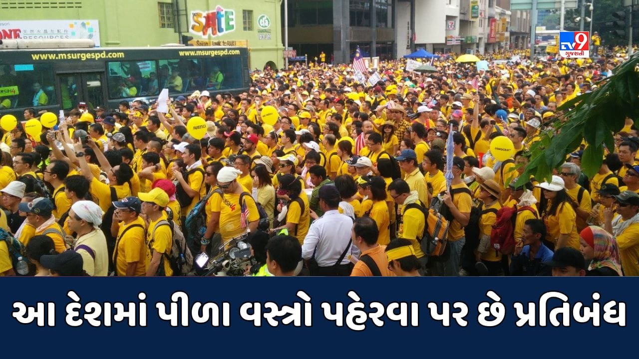 મલેશિયા એક એવો દેશ છે જ્યાં પીળા વસ્ત્રો પહેરવા પર પ્રતિબંધ છે. મલેશિયામાં 2015માં પીળા કપડા પર પ્રતિબંધ મૂકવામાં આવ્યો હતો. મલેશિયામાં વર્ષ 2015માં પીળા કપડા પહેરીને લોકોએ સરકારના ભ્રષ્ટાચાર સામે વિરોધ પ્રદર્શન કર્યું હતું. જેના કારણે અહીંની સરકારે પીળા કપડા પર પ્રતિબંધ લગાવી દીધો હતો.