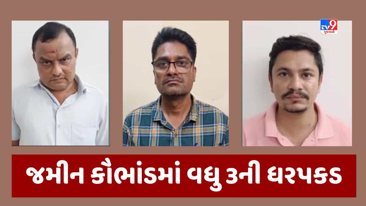 વડોદરા (Vadodara) જિલ્લામાં દંતેશ્વરની 100 કરોડની સરકારી જમીન (Land scam) પચાવી પાડવાના કેસમાં ક્રાઈમ બ્રાંચે એક નિવૃત્ત સહિત ત્રણ સરકારી કર્મચારીઓની ધરપકડ કરી છે. તુષાર મોદી, રાકેશ ઉપાધ્યાય અને ભગવતીપ્રસાદ લિંબાચીયાની ધરપકડ કરવામાં આવી છે. કોર્ટે ત્રણેય સરકારી કર્મચારીઓને જેલ હવાલે કર્યા છે. આ પહેલા 100 કરોડના જમીન કૌભાંડમાં 6 સરકારી કર્મચારીની ધરપકડ કરવામાં આવી હતી. જમીન કૌભાંડમાં ધરપકડનો આંક અત્યાર સુધીમાં 9 પર પહોંચ્યો છે.