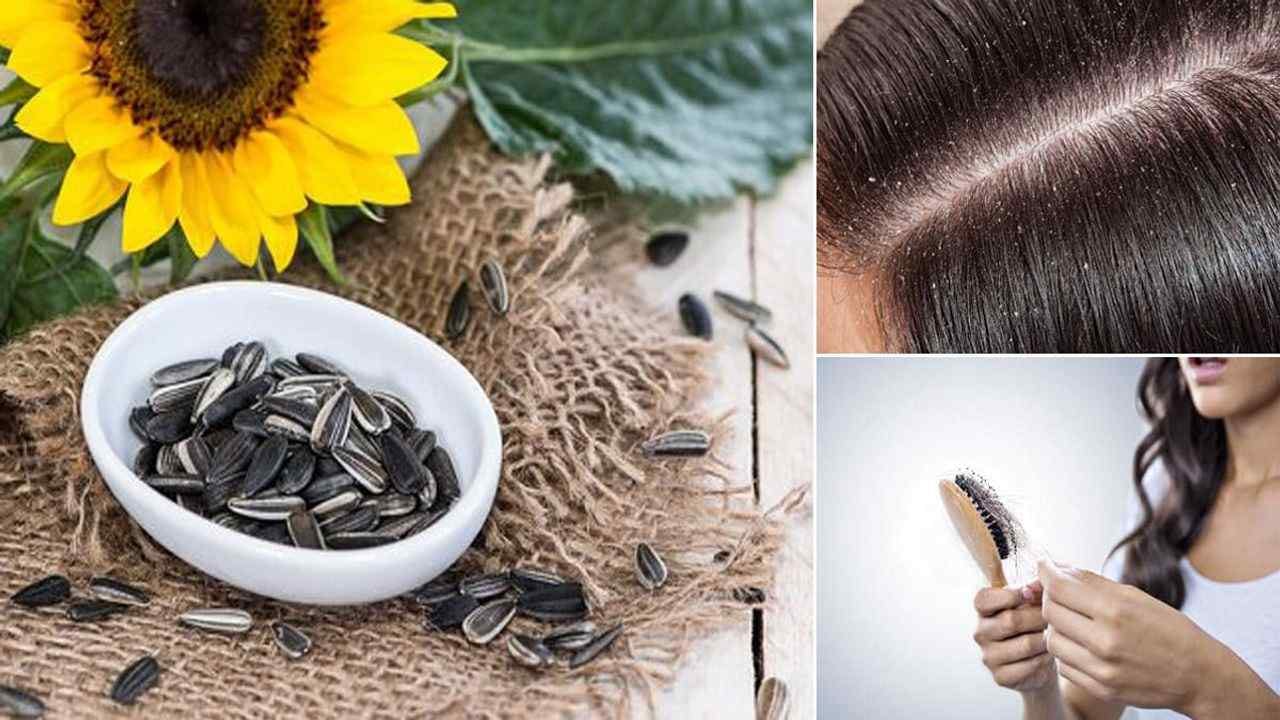 સૂર્યમુખીના બીજમાં રહેલું મહત્વપૂર્ણ ફેટી એસિડ્સ તમારા વાળને મોઈસ્ચ્યુરાઇઝ કરે છે અને તમારા વાળને હાઇડ્રેશન પ્રદાન કરવા અને નુકસાનને સુધારવા માટે કામ કરે છે. આ રીતે, તે શુષ્ક વાળની સમસ્યાને દૂર કરે છે. વધુમાં, સૂર્યમુખીના બીજમાં જોવા મળતું કોલેજન તેના રંગને પણ સુધારે છે અને તેના ઝિંક અને એન્ટીઑકિસડન્ટો સૂર્યના નુકસાન સામે રક્ષણ આપે છે.