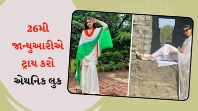 ગણતંત્ર દિવસના અવસર પર સુરભી ચંદનાનો આ લુક તમારા માટે પરફેક્ટ રહેશે. બનારસી સ્ટાઈલ ગોલ્ડન વર્કવાળી ઓફ-વ્હાઈટ બનારસી સાડી પસંદ કરી શકો છો. સિમ્પલ હેરસ્ટાઇલ અને કપાળ પર બિંદી અને એક હાથમાં બંગડીઓ વડે તમારો લુક પૂર્ણ કરી શકો છો.