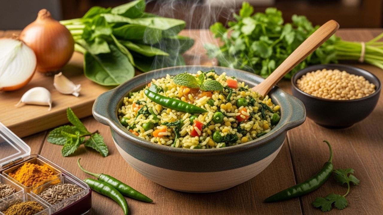 હરિયાળી મટર ખીચડી એક એવી વાનગી છે. તે દેખાવમાં જ આકર્ષક નથી, પણ પૌષ્ટિક અને સરળતાથી સુપાચ્ય પણ છે. આ ખીચડીની ખાસિયત તેનો લીલો મસાલો છે, જે તેને સામાન્ય પીળી ખીચડી કરતાં અલગ સ્વાદ અને સુગંધ આપે છે. ચાલો તેને સરળતાથી કેવી રીતે બનાવવું તે શીખીએ.