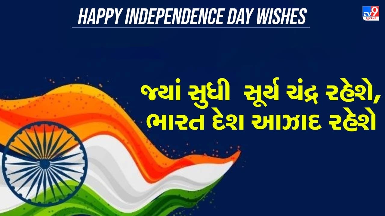 - ગુંજી રહ્યો છે વિશ્વમાં હિંદુસ્તાનનો નારો ચમકી રહ્યો છે આકાશમાં ત્રિરંગો આપણો સ્વતંત્રતા દિવસની હાર્દિક શુભેચ્છાઓ!