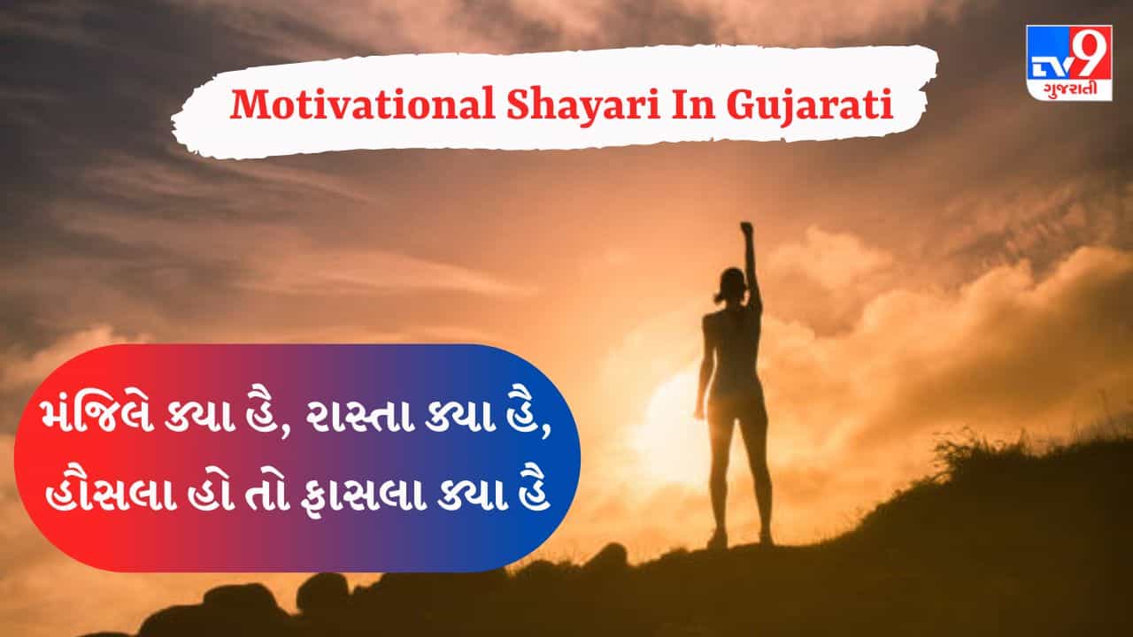 સફળ જીવન માટે મોટિવેશન હંમેશા જરૂરી છે. મોટિવેશનલ કવિતાઓ દ્વારા, તમે કોઈ પણ વ્યક્તિને પ્રેરણા આપી શકો છો અને જીવનમાં આગળ વધવા માટે પ્રોત્સાહિત કરી શકો છો. તેના માટે આજે ગુજરાતીમાં પ્રેરણાત્મક શાયરીનો અદ્ભુત સંગ્રહ લાવ્યા છીએ. આ લેખમાં નવીનતમ મોટિવેશનલ શાયરીઓ વાંચાવા મળશે. જે તમે સોશિયલ મીડિયા પર શેર કરી શકો છો. તેમજ આ મોટિવેશનલ શાયરી તમારા મિત્રો અને પરિવાર સાથે પણ શેર કરી શકો છો અને તેમને સફળતા અને વૃદ્ધિ માટે પ્રેરણા આપી શકો છો.