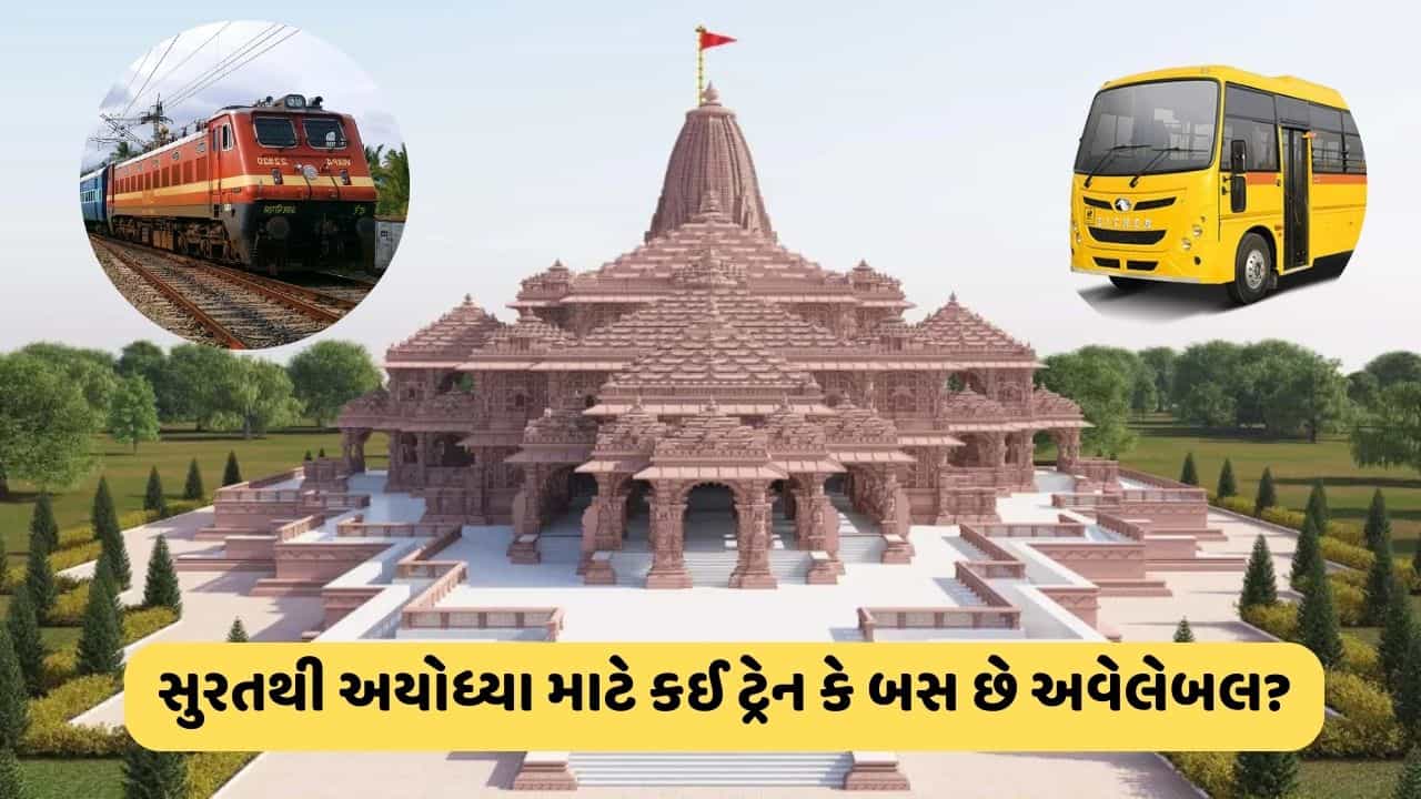 અયોધ્યા દર્શન માટે લાખોના સંખ્યામાં શ્રધ્ધાળુઓ દર્શન કરવા પહોચી રહ્યા છે. ત્યારે અમદાવાદથી અયોધ્યા જતી ફ્લાઈટ, બસ અને ટ્રેનની અગાઉ આપને માહિતી પહોંચાડી છે તે સાથે સુરતથી અયોધ્યા જતી ફ્લાઈટ અંગે પણ તમે વેબસાઈટ પર જઈને ચેક કરી શકો છો. જો કે આ બધાની વચ્ચે ફ્લાઈટના મોંઘા ભાડા કાઢવાને બદલે લોકો ટ્રેન કે બસોની ઈન્કવાયરી કરી રહ્યા છે. ત્યારે સુરતથી અયોધ્યા કઈ બસ કે ટ્રેન જઈ રહી છે ચાલો જાણીએ.