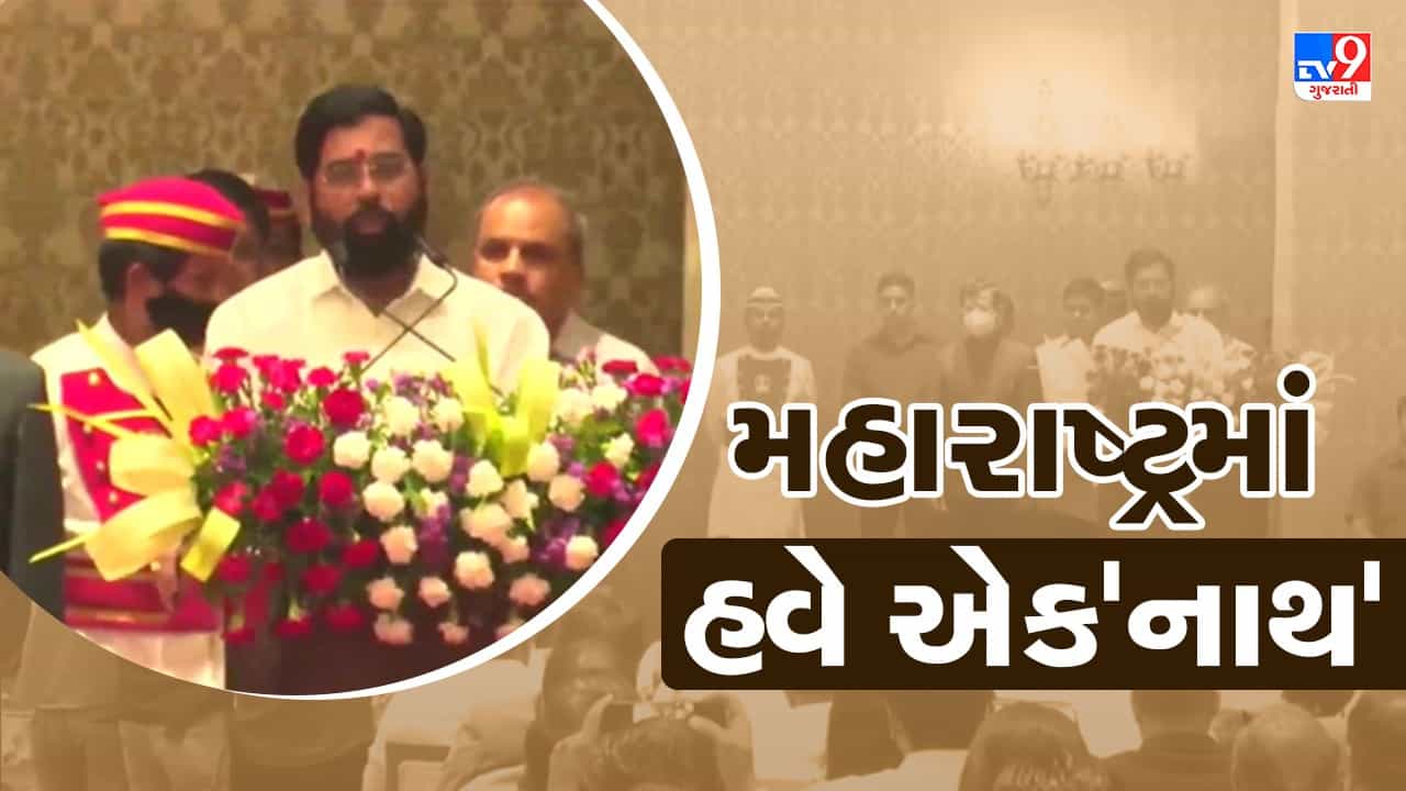 એકનાથ શિંદે સીએમ પદના શપથ લઈ રહ્યા છે. રાજ્યપ્રધાન શપથ લેવડાવી રહ્યા છે. શપથ લેતા પહેલા બાલાસાહેબનું નામ લીધું. તેમણે મરાઠીમાં શપથ લીધા.