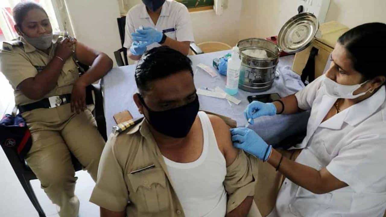 બૂસ્ટર ડોઝ મેળવી રહેલા પોલીસકર્મીઓ
