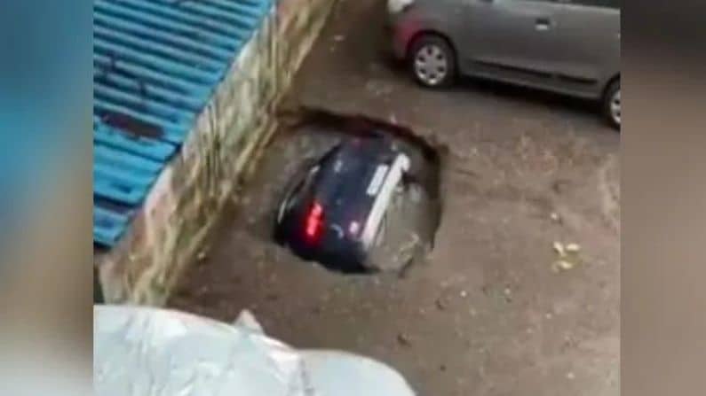પાર્કિગમાં ઉભેલી કાર પળવારમાં સમાઈ જમીનમાં, VIDEO સોશિયલ મીડિયામાં વાયરલ