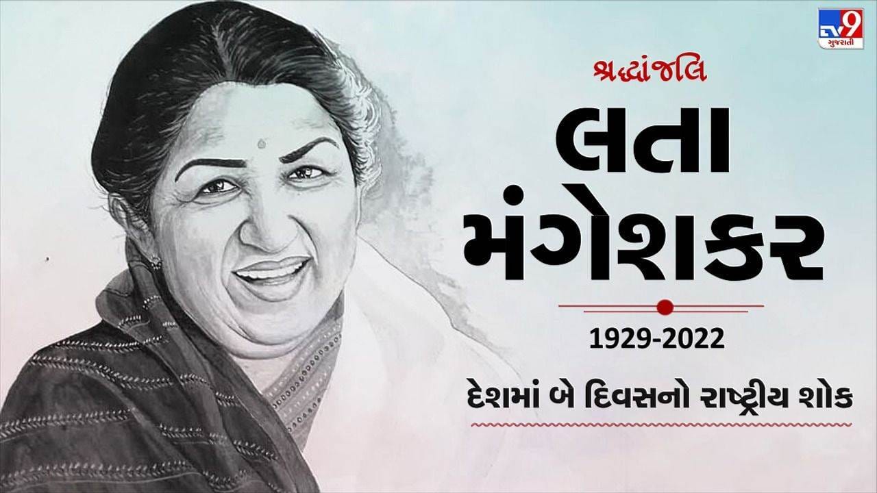 મેલોડી ક્વીન લતા મંગેશકર (Lata Mangeshkar)ના નિધન પર સરકારે બે દિવસના રાષ્ટ્રીય શોક (National mourning)ની જાહેરાત કરી છે. લતા મંગેશકરના નિધન પર દેશભરમાં શોકની લહેર છે. શ્રદ્ધાંજલિ આપતા વડાપ્રધાન નરેન્દ્ર મોદી (Prime Minister Narendra Modi)એ કહ્યું કે દેશે પોતાનો અવાજ ગુમાવ્યો છે. લતા મંગેશકર દેશ માટે કોઈ વારસાથી ઓછા ન હતા. તેમને વર્ષ 2001માં દેશના સર્વોચ્ચ નાગરિક પુરસ્કાર ‘ભારત રત્ન’થી સન્માનિત કરવામાં આવ્યા હતા.