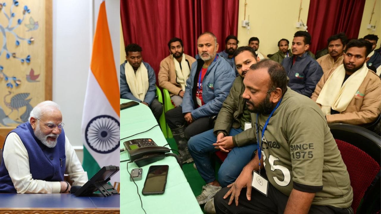 आदरणीय प्रधानमंत्री श्री @narendramodi जी ने सिलक्यारा टनल से सफलतापूर्वक रेस्क्यू किए गए श्रमिकों से फ़ोन पर बात कर उनका कुशलक्षेम जाना।#UttarakhandTunnelRescue pic.twitter.com/fxPqwq9L70