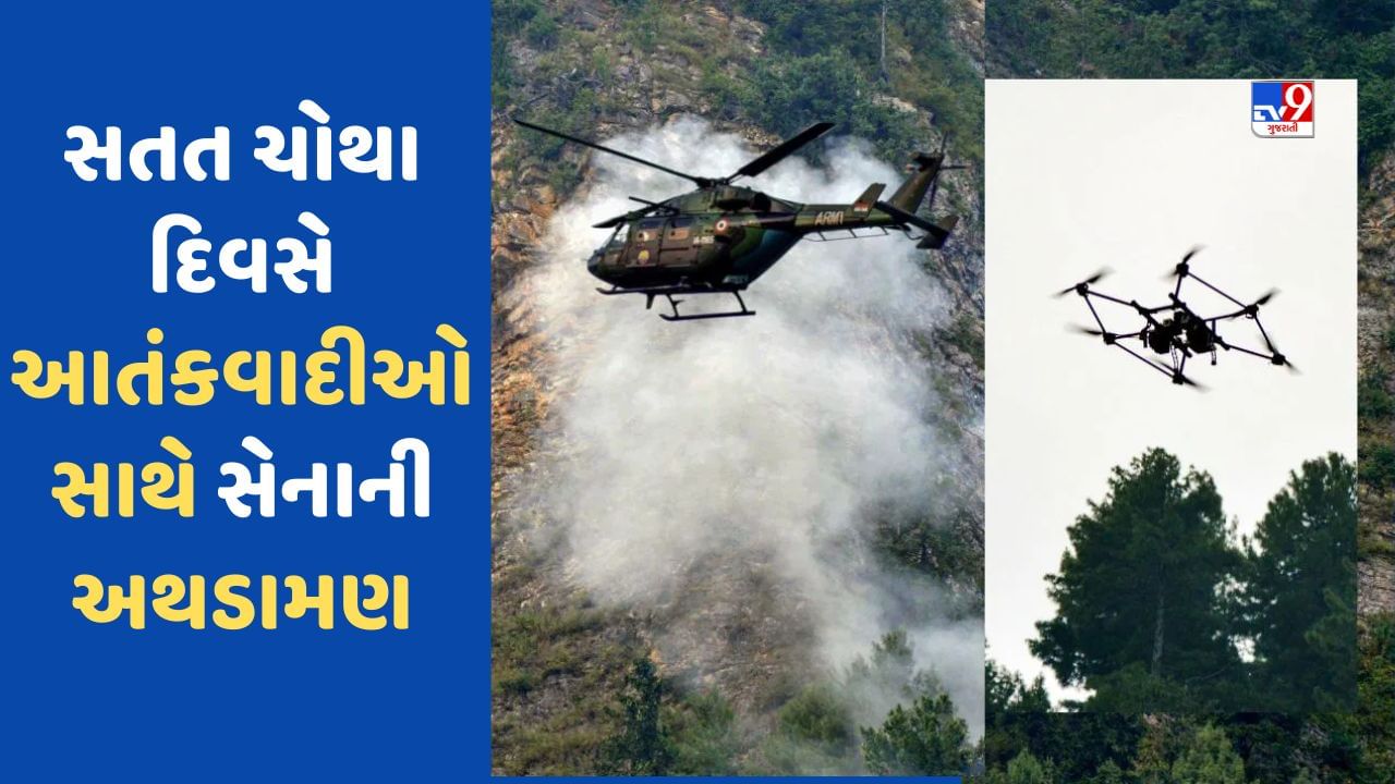 સતત ચોથા દિવસે આતંકવાદીઓ સાથે અથડામણ ચાલુ છે. ભારતીય જવાનો દ્વારા જડબાતોડ જવાબ આપવામાં આવી રહ્યો છે. કોકરનાગના જંગલમાં છુપાયેલા આતંકવાદીઓ પર હુમલો કરવા માટે ડ્રોન અને રોકેટ લોન્ચરથી બોમ્બમારો કરવામાં આવી રહ્યો છે. સુરક્ષા દળોએ 3 થી 4 આતંકીઓને ઘેરી લીધા છે. ત્રણ દિવસ પહેલા આતંકવાદીઓ સાથેના એન્કાઉન્ટરમાં ભારતીય સેનાના ત્રણ જવાનો શહીદ થયા હતા