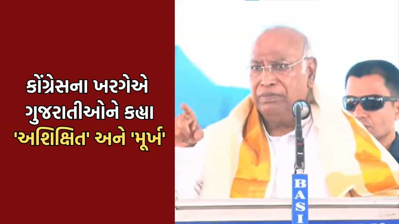 કોંગ્રેસના અધ્યક્ષ મલ્લિકાર્જુન ખરગેએ ફરી એકવાર ગુજરાતીઓનુ અપમાન કર્યુ છે. કેરલમમાં જનસભા દરમિયાન તેમણે તેણે વડાપ્રધાન નરેન્દ્ર મોદીનું નામ લઈને ગુજરાતીઓને અશિક્ષિત ગણાવ્યા. ખરગેએ કહ્યુ મોદીજી ગુજરાતની અશિક્ષિત જનતાને મૂર્ખ બનાવી શકે, પરંતુ કેરલના શિક્ષિત લોકોને મૂર્ખ ન બનાવી શકે. કેરલમમાં પ્રચાર સમયે મલ્લિકાર્જુન ખરગેનું વિવાદાસ્પદ નિવેદન સામે આવ્યુ છે. કોંગ્રેસ અધ્યક્ષે ગુજરાતીઓનું અપમાન કરતા રાજકારણ ગરમાયુ છે.