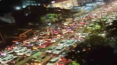 #WATCH | Tamil Nadu: Heavy rainfall causes traffic jam at Chennai’s Mount Road