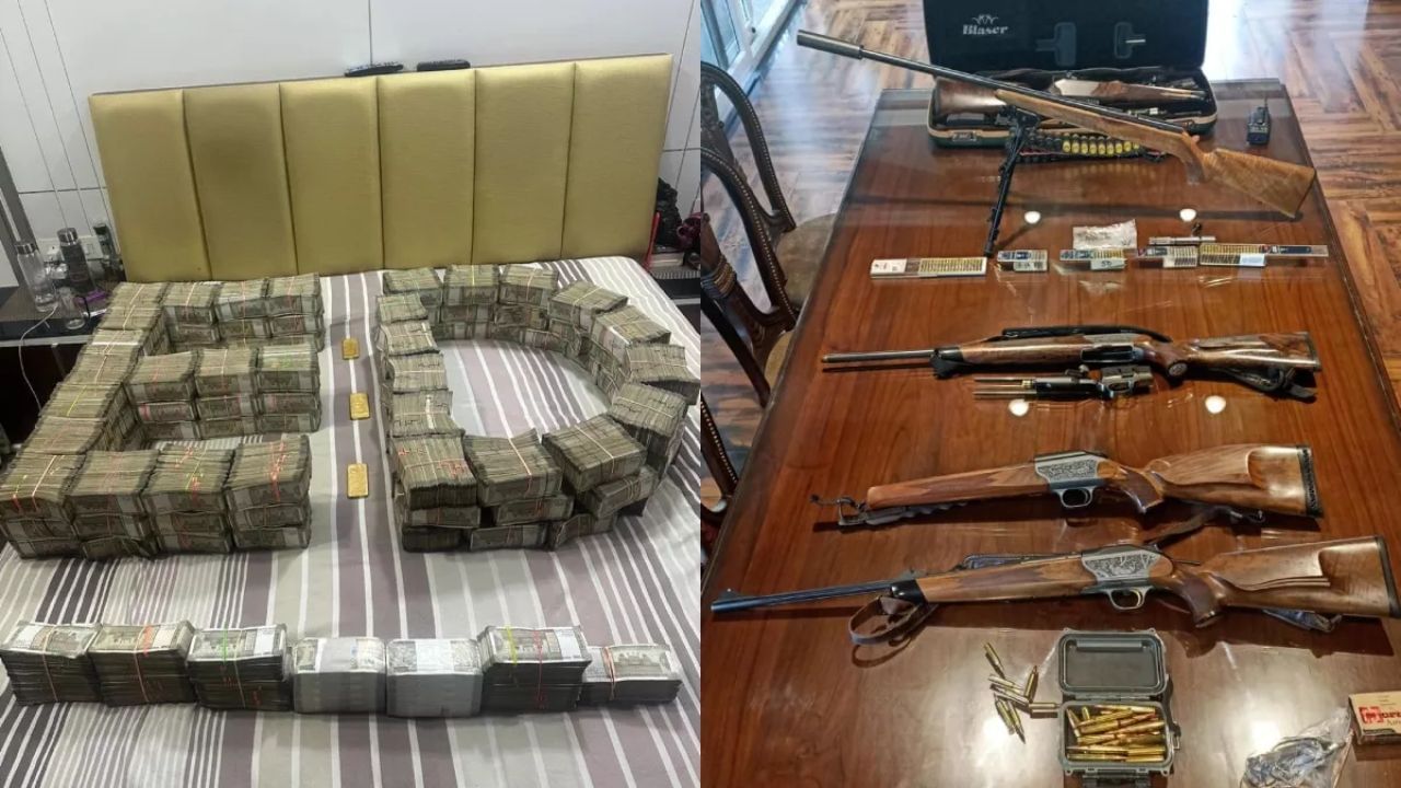 ચલણી નોટોની વાડ ઉપરાંત ગેરકાયદેસર વિદેશી બનાવટના હથિયારો, 300 કારતૂસ, 100થી વધુ દારૂની બોટલો અને દેશ-વિદેશમાં અનેક મિલકતો સહિત અન્ય સામગ્રી મળી આવી છે.