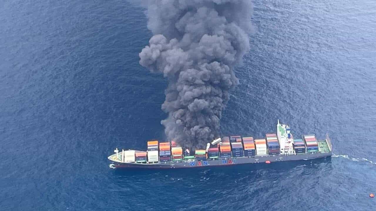 MV WAN HAI 503 on passage from Colombo to Nhava Sheva reported an explosion under deck in position 315, Kochi 130. 04 crew reported missing and 05 crew injured. The ship was carrying containerised cargo with a total crew of 22. CGDO on task diverted for assessment. ICGS Rajdoot… https://t.co/bZeEO2LG4M pic.twitter.com/tvQVlQuerm
