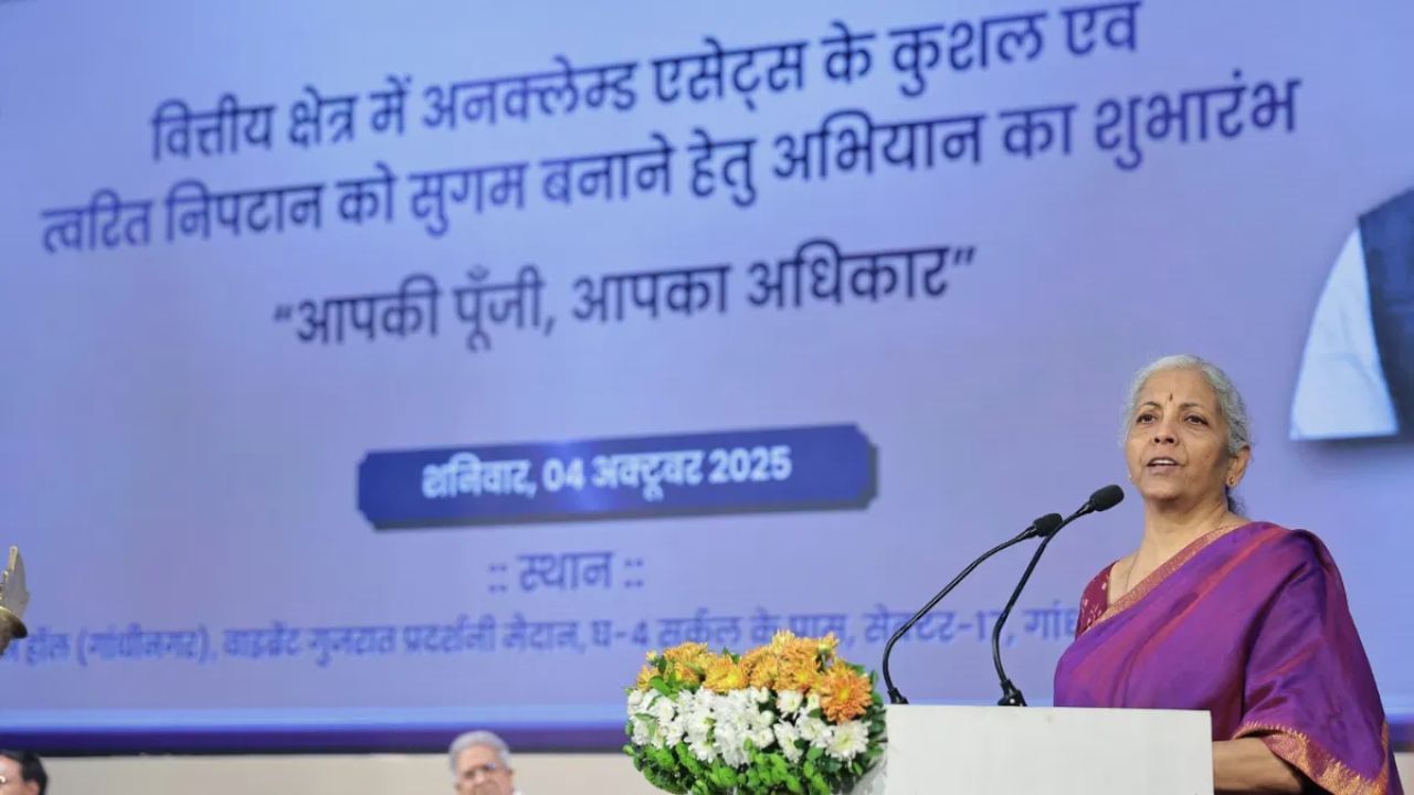 કેન્દ્રીય ફાઇનાન્સ મિનિસ્ટર નિર્મલા સીતારામને શનિવાર, 4 ઓક્ટોબરના રોજ જણાવ્યું હતું કે, બેંકો અને નાણાકીય નિયમનકારો પાસે ₹1.84 લાખ કરોડની ‘અનક્લેમ્ડ સંપત્તિ’ છે. તેમણે અધિકારીઓને વિનંતી કરી કે, આ નાણાં તેના હકદાર માલિકો સુધી પહોંચે તેની ખાતરી કરે. સીતારામને ગાંધીનગરમાં એક કાર્યક્રમમાં “આપકી પૂંજી, આપકા અધિકાર” ઝુંબેશ શરૂ કરી.