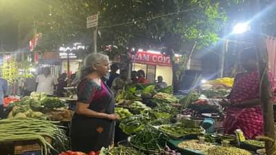નાણામંત્રી નિર્મલા સીતારમણનો (Finance Minister Nirmala Sitharaman) એક વીડિયો સોશિયલ મીડિયા પર વાયરલ થઈ રહ્યો છે. આ વીડિયોમાં તેઓ શાકભાજી (vegetables) ખરીદતા જોવા મળી રહ્યા છે. આ વીડિયો તેમના ઓફિસના ઓફિશિયલ ટ્વિટર હેન્ડલ પરથી ટ્વીટ કરવામાં આવ્યો છે. બન્યું એવું કે નિર્મલા સીતારમણ ગઈકાલ શનિવારે રાત્રે અચાનક ચેન્નાઈના માયલાપોર વિસ્તારમાં એક શાક માર્કેટમાં (Vegetable market) પહોંચી ગયા. શાકમાર્કેટમાં તેમને જોઈને લોકો આશ્ચર્યચકિત પણ થઈ ગયા. આ દરમિયાન કેટલાક લોકોએ તેમનો શાકભાજી ખરીદતો વીડિયો પણ બનાવ્યો હતો.