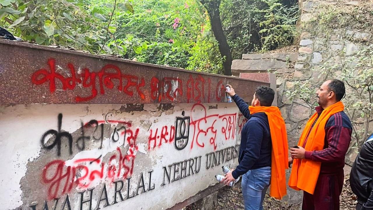 કોમ્યુનિસ્ટો ભારત છોડો… JNUની દિવાલ પર હિન્દુ રક્ષા દળે લખ્યા ભડકાઉ સૂત્રો