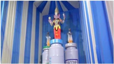 આ પંડાલમાં ગણેશ સાથે બે ઉંદરો પર વેક્સિન (Vaccine) પર બિરાજમાન થયેલા જોવા મળી રહ્યા છે. હાલ આ મૂર્તિ વેક્સિનનેશન ડ્રાઈવને પ્રોત્સાહન આપી રહી છે. પ્રમુખ સચિને જણાવ્યુ હતુ કે, “અમે ગણેશ મૂર્તિઓ દ્વારા સામાજિક સંદેશ આપી રહ્યા છીએ કે વેક્સિન સુરક્ષિત છે અને દરેકને રસીકરણ (Vaccination) કરાવવું જોઈએ.” હાલ ભક્તો પણ COVID-19 રસીકરણ અભિયાનને પ્રોત્સાહન આપવાના આ પ્રયાસની ખુબ પ્રશંસા કરી રહ્યા છે.