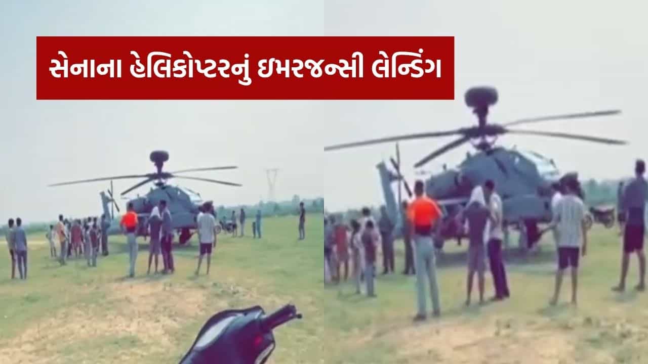 VIDEO | Pathankot, Punjab: An Apache helicopter of the Indian Air Force (IAF) made emergency landing in Nangalpur area. More details are awaited.