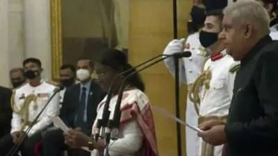 Delhi | President Droupadi Murmu administers the oath of office to Vice President-elect Jagdeep Dhankhar
