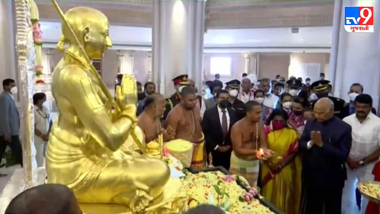 રાષ્ટ્રપતિ રામનાથ કોવિંદે (Ram Nath Kovind) આજે હૈદરાબાદમાં ‘સ્ટેચ્યુ ઓફ ઈક્વાલિટી’ (Statue Of Equality) સંકુલ પાસે શ્રી રામાનુજાચાર્યની (Ramanujacharya) સુવર્ણ પ્રતિમાનું અનાવરણ કર્યું હતું. તેમણે સ્વામીજીને નમન કરી અને આરતી કરી હતી. આ દરમિયાન સમગ્ર પરીસર ભક્તિમય બની ગયું હતું. રાષ્ટ્રપતિએ કહ્યું કે ચિન્ના જીયર સ્વામીએ આ દેશમાં રામાનુજાચાર્યજીની ભવ્ય પ્રતિમા સ્થાપિત કરીને ઈતિહાસ રચ્યો છે. ભારતના ગૌરવશાળી ઈતિહાસમાં ભક્તિ અને સમાનતાના મહાન ધ્વજવાહક ભાગવત શ્રી રામાનુજાચાર્ય સહસ્ત્રાબ્દી સ્મૃતિ મહા મહોત્સવના શુભ અવસર પર તમામ દેશવાસીઓને હાર્દિક અભિનંદન. આ સમારોહમાં ભાગ લેવો અને રામાનુજાચાર્યની સુવર્ણ પ્રતિમાનું અનાવરણ કરવું મારા માટે ખૂબ જ સૌભાગ્યની વાત છે. રાષ્ટ્રપતિ કોવિંદે કહ્યું કે 5મી ફેબ્રુઆરીએ વસંત પંચમીના દિવસે વડાપ્રધાન નરેન્દ્ર મોદીએ શ્રી રામાનુજાચાર્યજીની ભવ્ય સમતા મૂર્તિનું અનાવરણ કર્યું હતું.