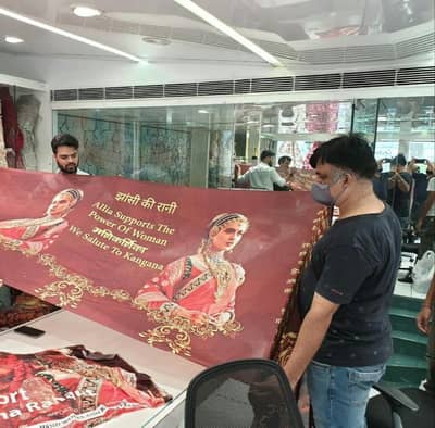 આલિયા ફેબ્રિક્સના નામથી, સુરતના યુનિવર્સલ ટેક્સટાઇલ માર્કેટમાં સ્થાપના કરનારા, સ્થાનિક કાપડના વેપારીઓ છોટુભાઇ અને રજત ડાવરે, કંગના રનૌતની પ્રિન્ટેડ ફેન્સી શુદ્ધ ક્રેપ સાડી લોન્ચ કરી. કંગનાની મણિકર્ણિકા ખ્યાતિ સાડીના પલ્લુ પર એક સુંદર તસવીર છે, જેના પર લખેલી “આઈ સપોર્ટ કંગના રનૌત” છે. આલિયા ફેબ્રિક્સ પ્રીમિયમ ફેન્સી કાપડ માટે જાણીતી છે અને તે ખાસ કરીને બોલિવૂડ ડિઝાઇનર્સમાં લોકપ્રિય છે. તેમનો ધંધો મુંબઇ, દિલ્હી, કોલકાતા, હૈદરાબાદ, ચેન્નાઈ વગેરે કાપડ માર્કેટમાં વ્યાપક છે. તાજેતરમાં, જ્યારે દેશભરમાં ‘બહિષ્કાર ચાઇના’ અભિયાનનું આયોજન કરવામાં આવ્યું હતું, ત્યારે તેઓએ પણ તેમાં ભાગ લીધો હતો…