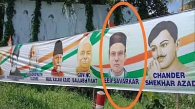 કોંગ્રેસની ‘ભારત જોડો યાત્રા’ (Bharat Jodo Yatra) ચાલી રહી છે. આ દરમિયાન, યાત્રા કેરળના એર્નાકુલમ જિલ્લામાં પહોંચી કે તરત જ તેને એવી ભૂલનો સામનો કરવો પડ્યો જેની કોઈ કાર્યકરને અપેક્ષા ન હતી. યાત્રાના એક પોસ્ટરમાં અન્ય સ્વાતંત્ર્ય સેનાનીઓ સાથે કતારમાં વિનાયક દામોદર સાવરકરની (Veer Savarkar) તસ્વીર પણ સામેલ હતી. આ મામલે કોંગ્રેસે સ્પષ્ટતા કરી કે આ પ્રિન્ટિંગ મિસ્ટેક છે.