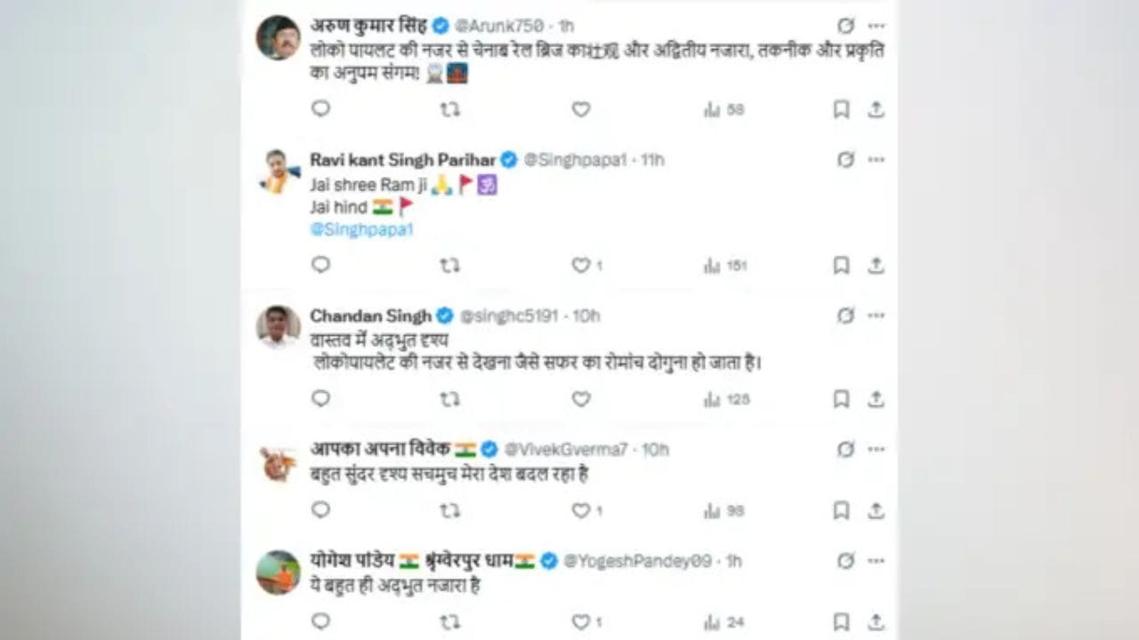 જ્યારે લોકો પાયલોટ ટ્રેનની આગળની દિશામાં ચેનાબ નદીના બ્રિજ પરથી પસાર થઈ રહ્યો હોય છે, ત્યારે તે કેમેરા ચાલુ કરે છે અને વીડિયો બનાવવાનું શરૂ કરે છે. આવી સ્થિતિમાં એક તરફ, લોકોની નજર પહેલા પુલના થાંભલાઓ પર જાય છે, જ્યારે બીજી તરફ ઊંચા પર્વતો અને હરિયાળી પણ દેખાય છે. જેને જોયા પછી લોકો આ દૃશ્યની પ્રશંસા કરતા પોતાને રોકી શકતા નથી.