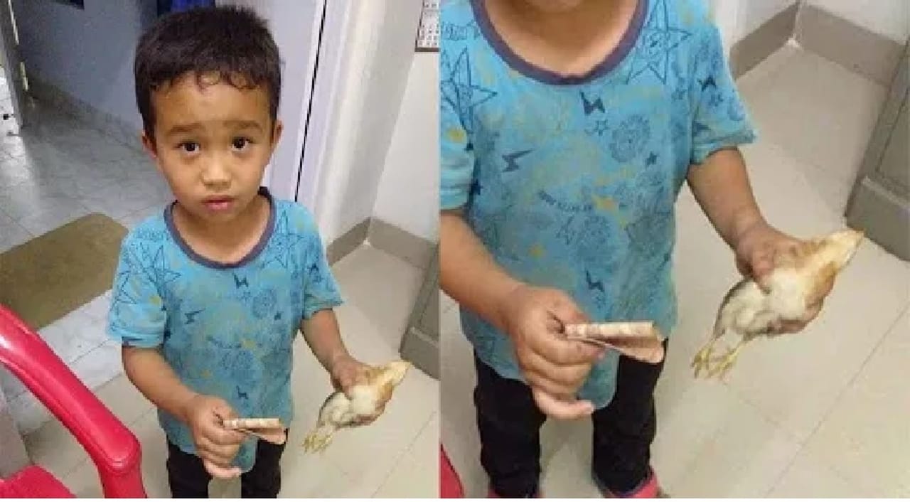 મિઝોરમમાં એક નાનો છોકરો સાયકલ ચલાવી રહ્યો હતો. ભૂલથી તેના સાયકલના ટાયરની નીચે તેના પડોશીના મરઘીનું બચ્ચું આવી જતાં તેને ખુબ દુઃખ થયુ હતું. ત્યારબાદ તેની પાસે જેટલા પણ પૈસા હતા તે અને મરઘીના બચ્ચાને ઉઠાવીને દાડ્યો. તેના ઘરની નજીક આવેલા એક દવાખાનામાં પહોંચી ગયો કારણ કે તેની સારી દવા કરી શકે.