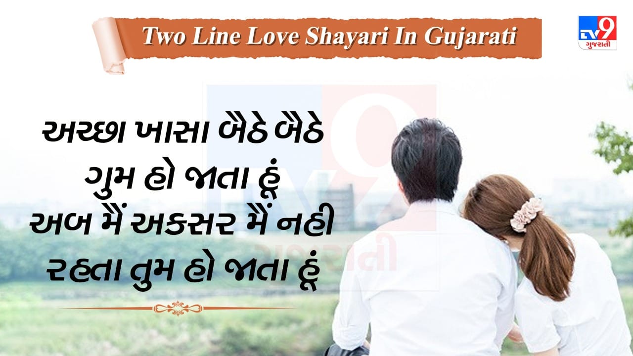આ પોસ્ટમાં અમે કેટલીક જબરદસ્ત Two line પ્રેમભરી શાયરી લઈને આવ્યા છીએ, મિત્રો, દરેક વ્યક્તિના જીવનમાં થોડુ રોમાન્સ જરુરી છે વ્યસ્ત લાઈફમાંથી થોડો ટાઈમ કાઢી તમારી પ્રેમિકા કે પ્રેમીને આ શાયરી શેર કરો અને તમારા પ્રેમનો ઈઝહાર કરો.