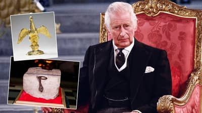 પ્રાચીન પથ્થર 'સ્ટોન ઓફ ડેસ્ટિની': આ એક પ્રાચીન પથ્થર છે જે રાજ્યાભિષેક ખુરશીની નીચે રાખવામાં આવે છે. તે સ્કોટલેન્ડની રાજાશાહીના પ્રતીક તરીકે ઓળખાય છે. તેનો ઉપયોગ સ્કોટલેન્ડના રાજાઓના રાજ્યાભિષેકમાં કરવામાં આવ્યો હતો, જેને એડવર્ડ I દ્વારા કબજે કરવામાં આવ્યો હતો. તેનું વજન 152 કિલો છે. એકવાર તે એક વિદ્યાર્થી દ્વારા ચોરી કરવામાં આવી હતી. ત્રણ મહિનાની તપાસ અને આંદોલન પછી તે પશ્ચિમી સ્કોટલેન્ડમાં મળી આવ્યો હતો. (ફોટો ક્રેડિટ્સ: thescottishsun)