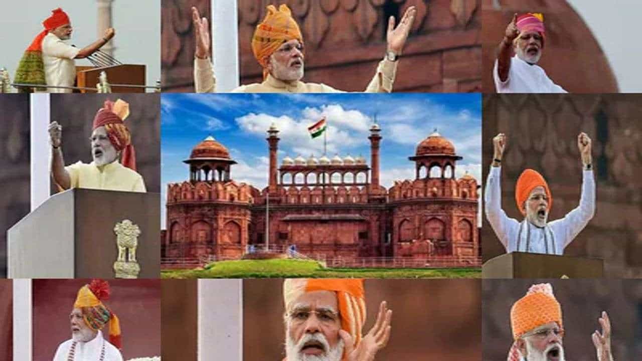 વડાપ્રધાન નરેન્દ્ર મોદી (PM Narendra Modi) સોમવારે સતત નવમી વખત લાલ કિલ્લા પરથી રાષ્ટ્રધ્વજ ફરકાવશે અને રાષ્ટ્રને સંબોધન કરશે. આ આઠ વર્ષમાં દર વર્ષે પીએમ મોદીના સાફાનો રંગ બદલાતો જોવા મળ્યો. આવી સ્થિતિમાં ભારતની નજર આ વર્ષે તેમની પાઘડી અને પહેરવેશ પર ટકેલી છે. 2014થી 2021 સુધી તેનો ડ્રેસ અને પાઘડી બંને ચર્ચામાં રહ્યા છે. અમે તમને જણાવી દઈએ કે, આ વર્ષે 15 ઓગસ્ટના રોજ ઉજવણી ખાસ છે. કારણ કે તે ભારતે આઝાદીની 75મી વર્ષગાંઠ પુર્ણ કરેલી છે.