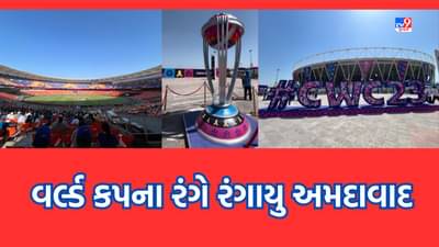 નરેન્દ્ર મોદી સ્ટેડિયમમાં મુકાયેલી વર્લ્ડકપ ટ્રોફીની રેપ્લિકાએ ભારે આકર્ષણ જમાવ્યુ છે. 10 ફુટ કરતા પણ મોટી આ વર્લ્ડકપ ટ્રોફી ક્રિકેટ રસિકોમાં આકર્ષણનું કેન્દ્ર બની છે.