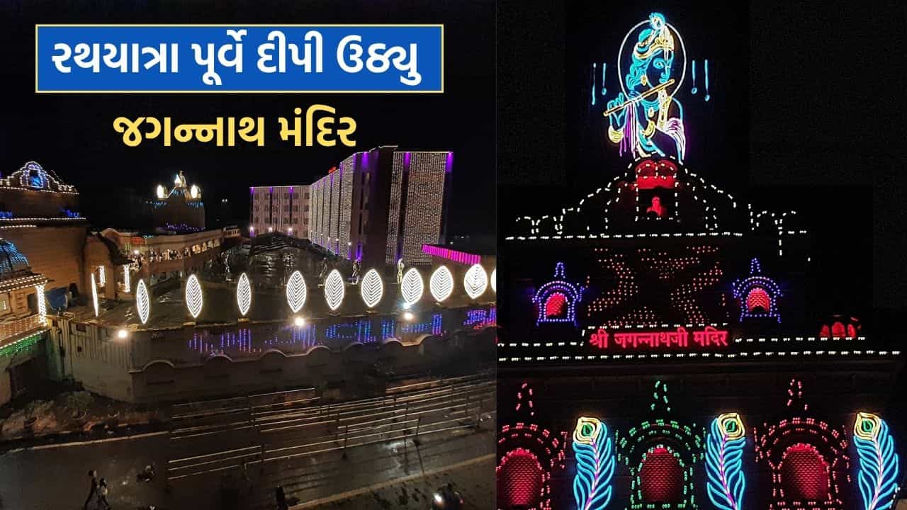 જગન્નાથજીની રથયાત્રા પહેલાની તૈયારીઓના ભાગરૂપે મંદિરને શણગારવામાં આવી રહ્યુ છે. વિવિધ રંગી રોશનીનો શણગાર કરાતા હાલ મંદિર દીપી ઉઠ્યુ છે.