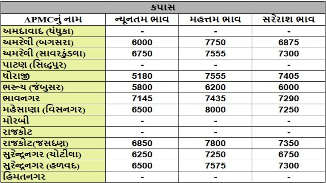 કપાસના તા.13-05-2025ના રોજ APMCના ભાવ રૂ.5180 થી 8000 રહ્યા.
