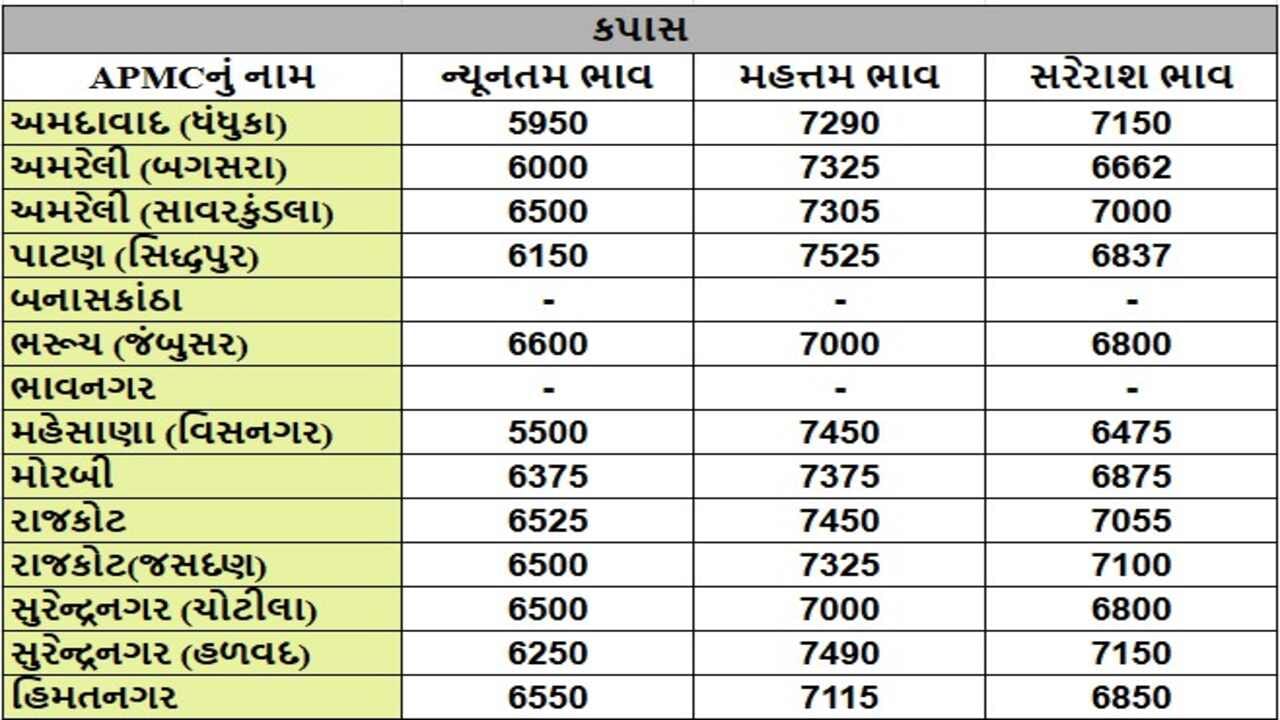 કપાસના તા.05-02-2025ના રોજ APMCના ભાવ રૂ.5500 થી 7525 રહ્યા.