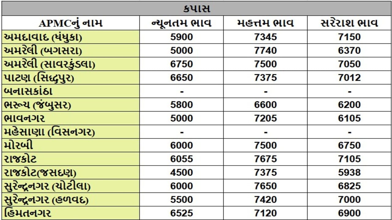 કપાસના તા.16-10-2025ના રોજ APMCના ભાવ રૂ.4500 થી 7740 રહ્યા.