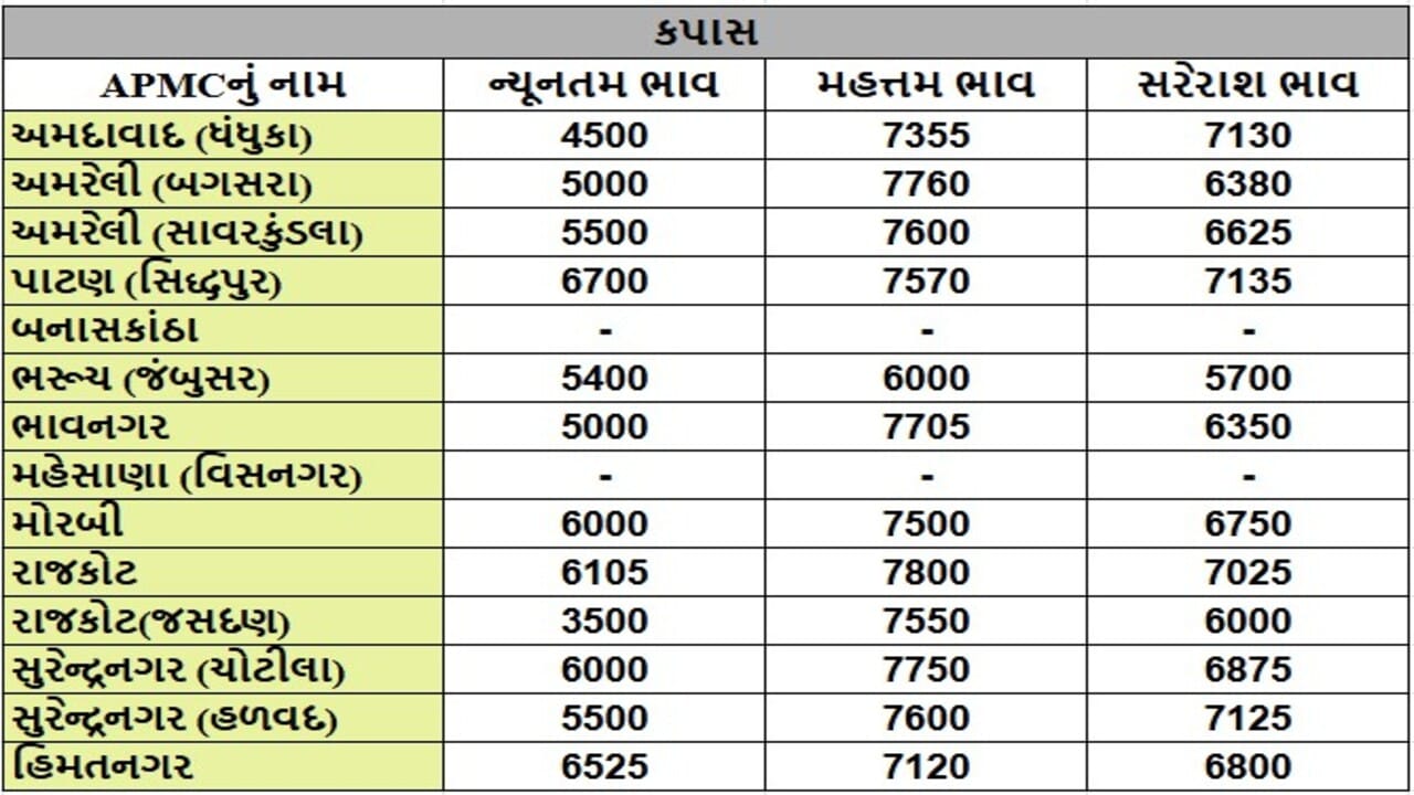 કપાસના તા.14-10-2025ના રોજ APMCના ભાવ રૂ.3500 થી 7800 રહ્યા.