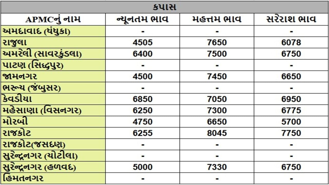 કપાસના તા.19-09-2025ના રોજ APMCના ભાવ રૂ.4500 થી 8045 રહ્યા.