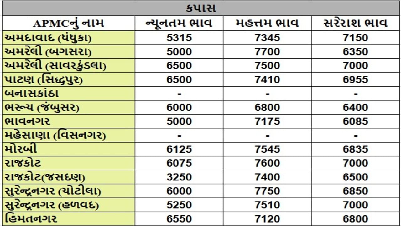 કપાસના તા.15-10-2025ના રોજ APMCના ભાવ રૂ.3250 થી 7750 રહ્યા.