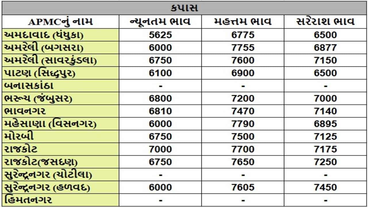 કપાસના તા.22-04-2025ના રોજ APMCના ભાવ રૂ.5625 થી 7790 રહ્યા.