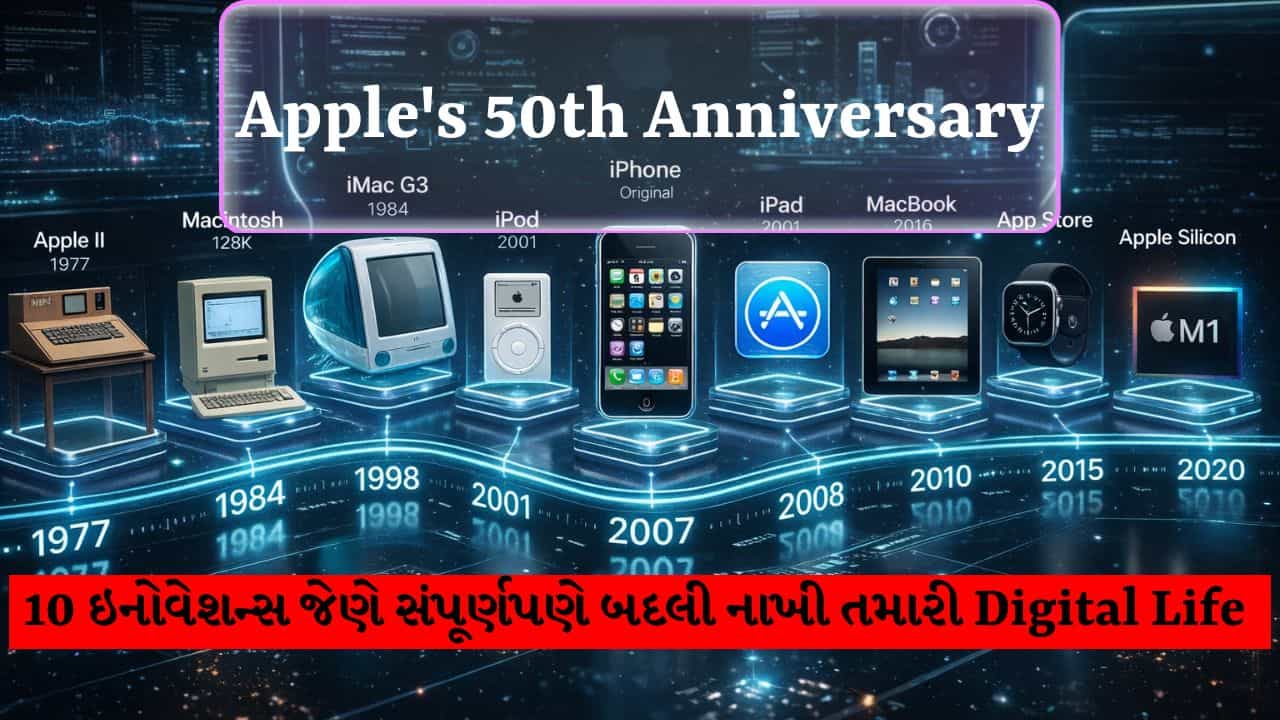 1 એપ્રિલ 2026ના રોજ એપલ (Apple) પોતાના 50 વર્ષ પૂર્ણ કરી રહ્યું છે. આ માત્ર એક કંપનીની એનિવર્સરી નથી, પરંતુ ટેક્નોલોજી ક્રાંતિની અર્ધસદીનો ઉત્સવ છે. એક નાના ગેરેજમાંથી શરૂ થયેલી આ કંપની આજે 4 ટ્રિલિયન ડોલરના વ્યાપક સામર્થ્ય ધરાવે છે, જે અનેક દેશોની GDP કરતાં પણ વધારે છે. (Image Credit Source: Social Media)