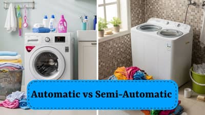 બીજી તરફ સેમી-ઓટોમેટિક વોશિંગ મશીનમાં બે અલગ ટબ હોય છે. એક ટબમાં કપડાં ધોવામાં આવે છે અને બીજા ટબમાં તેને સુકવવામાં આવે છે. તેમાં વપરાશકર્તાને પાણી જાતે ભરવું પડે છે અને કેટલીક પ્રક્રિયાઓ હાથથી કરવી પડે છે. (Image Credit Source: AI)