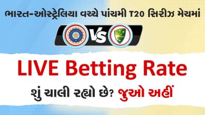 પાંચમી T20 મેચ શરૂ થવાના 2 કલાક પહેલા બંને ટીમના LIVE Betting રેટ સામે આવી ચૂક્યા છે, જેમાં ભારતનો રેટ 1.52 અને ઓસ્ટ્રેલિયાનો રેટ 2.62 ની આસપાસ ચાલી રહ્યો છે. જેનો એ અર્થ થયો કે ઓસ્ટ્રેલિયા સામે જીતવા માટે ભારત ફેવરિટ છે.
